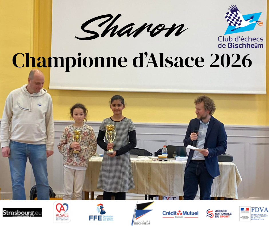 En effet, chez les U12 Féminines, Sharon est couronnée Championne d’Alsace après un championnat de très haut vol (5,5 points sur 7 et une performance de 1860) marqué par les victoires, coup sur coup, contre ses deux futures dauphines. Elle prépare ainsi au mieux les Championnats de France qui se disputeront en avril à Albi. Un titre régional, le deuxième de l’histoire du Club d’Echecs de Bischheim (après le titre de Julia), qui récompense le travail et le sérieux de Sharon. Titulaire indiscutable de notre équipe de Nationale 2 Jeunes, elle s’affirme et confirme semaine après semaine ses progrès et sa montée en puissance, bien épaulée par son frère Indervir, qui disputera l’Open lors du Championnat de France, et sa famille.